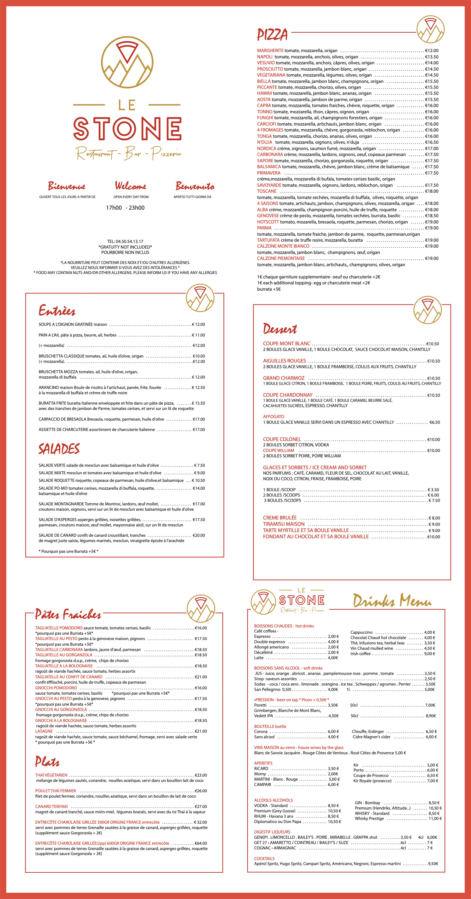 Menu Stone Bar Argentière / Notre Carte